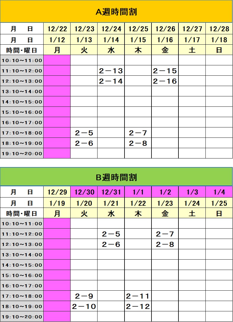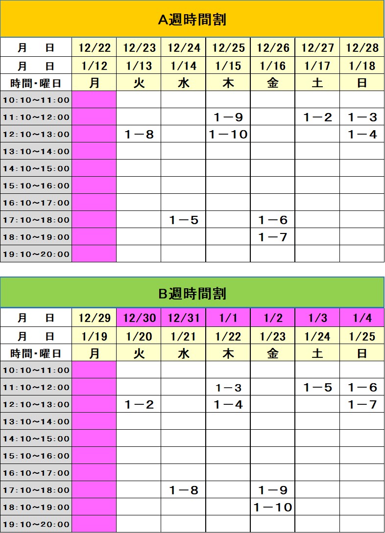 ※時間についてはお問い合わせ下さい。