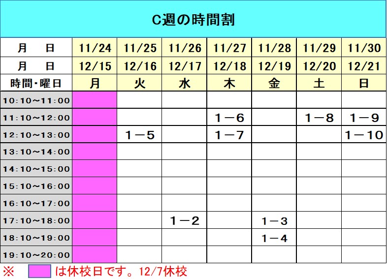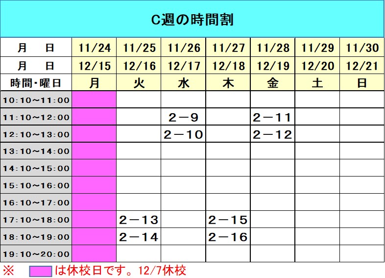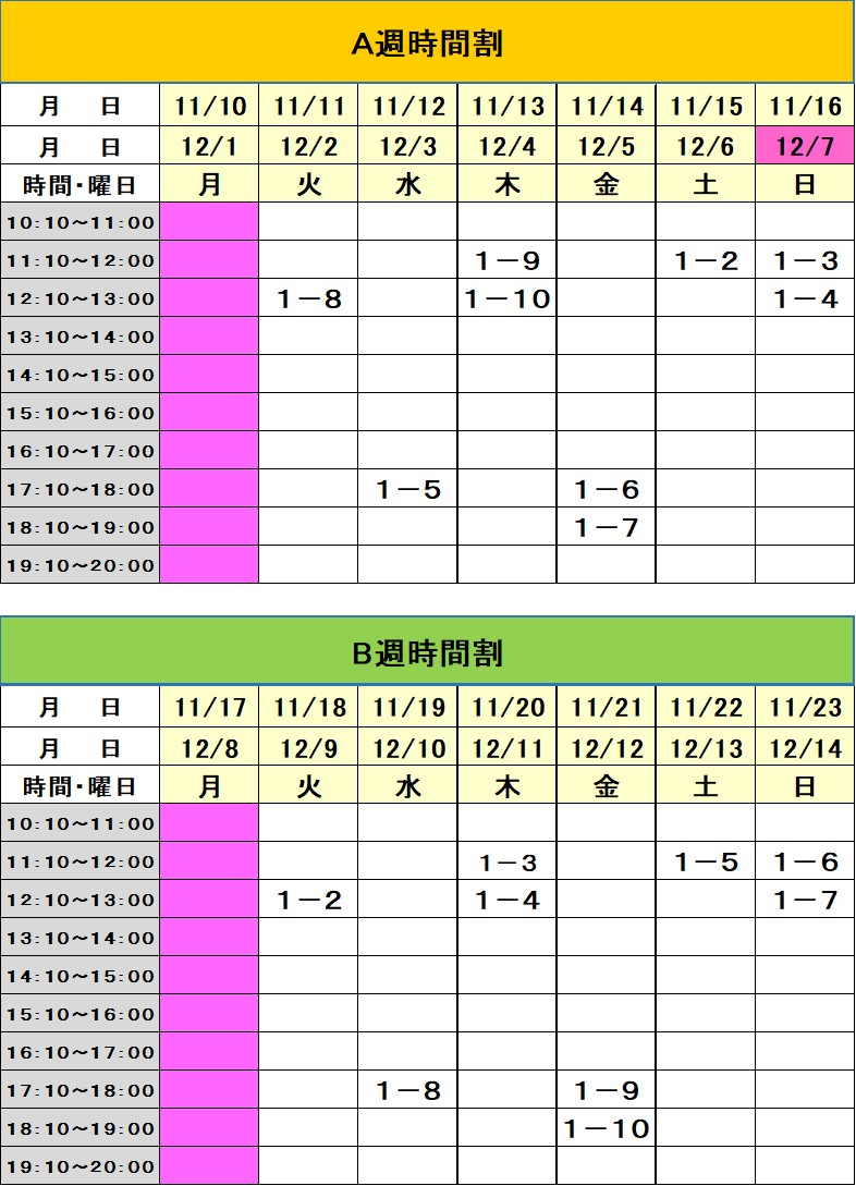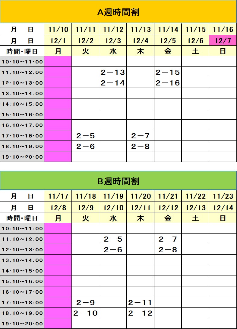 ※時間についてはお問い合わせ下さい。